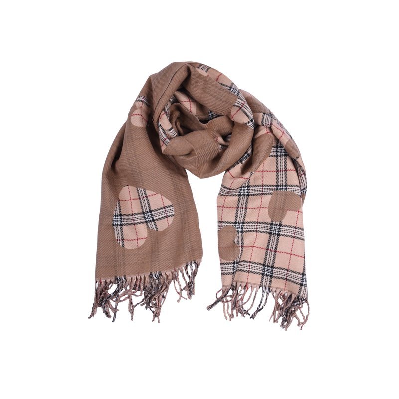 Beżowy Szalik w Kratę i Serca – Klasyka w Nowoczesnym Wydaniu