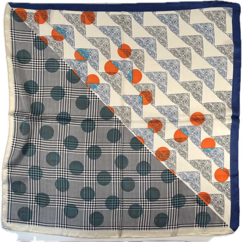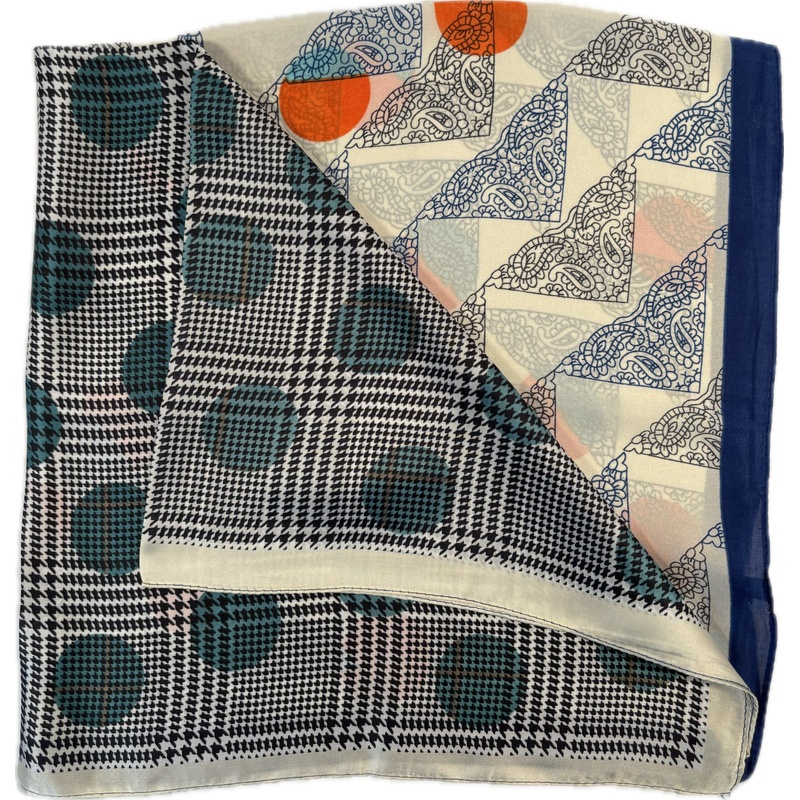 Ta nowoczesna apaszka z geometrycznym wzorem kratki to wyjątkowy dodatek inspirowany współczesnym designem i abstrakcyjną sztuką. Zielono-pomarańczowa kolorystyka z charakterystycznym wzorem geometrycznej siatki tworzy dynamiczną kompozycję idealną dla miłośniczek nowoczesnego stylu z nutą artyzmu i energii.