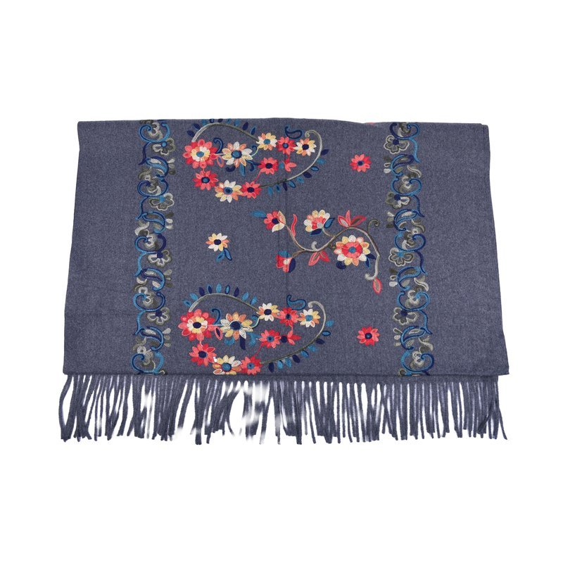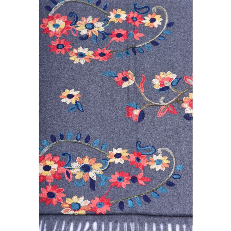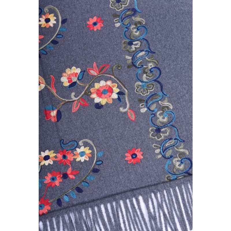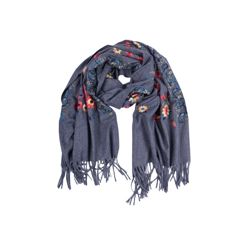 Szary Szalik w Haftowane Kwiaty – Wełna Bawełna